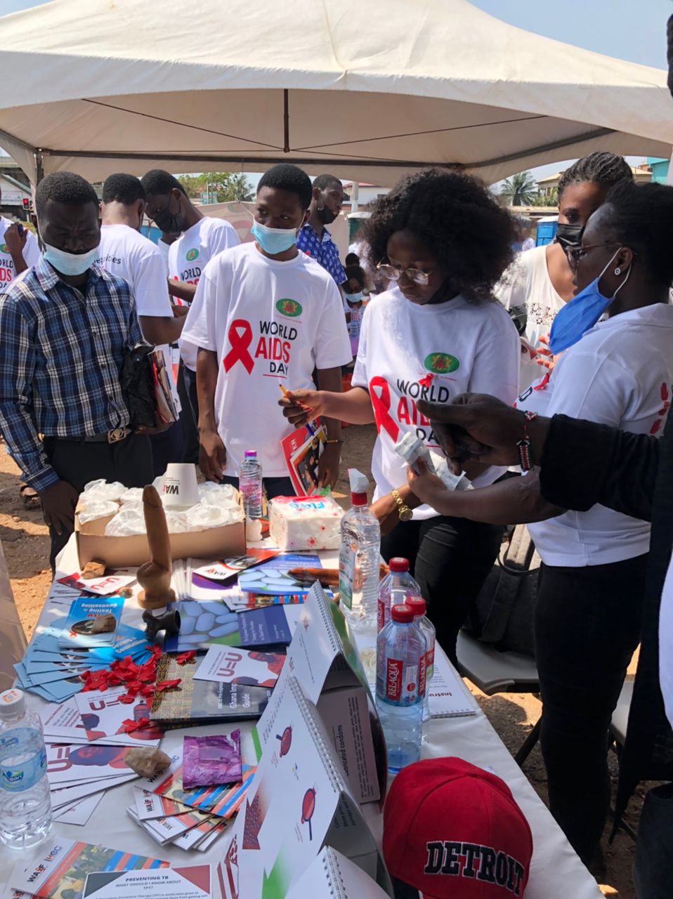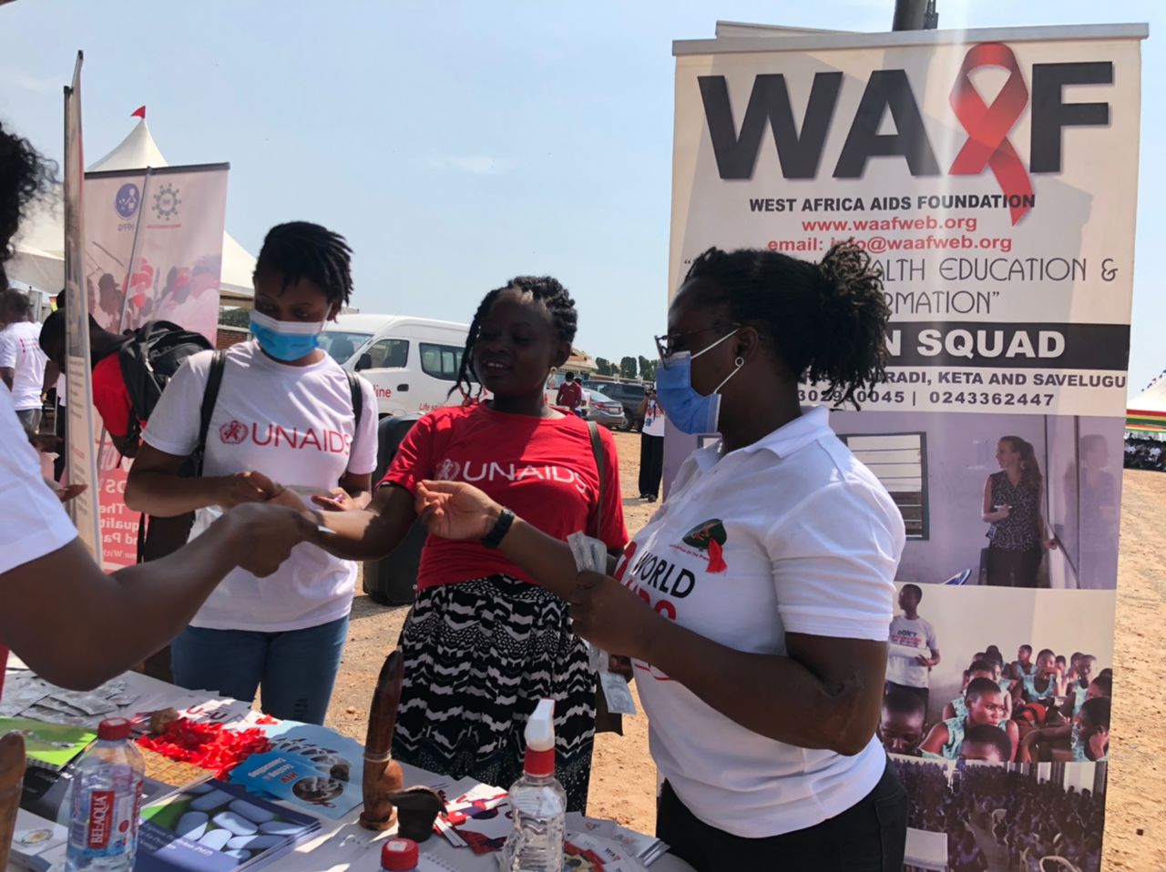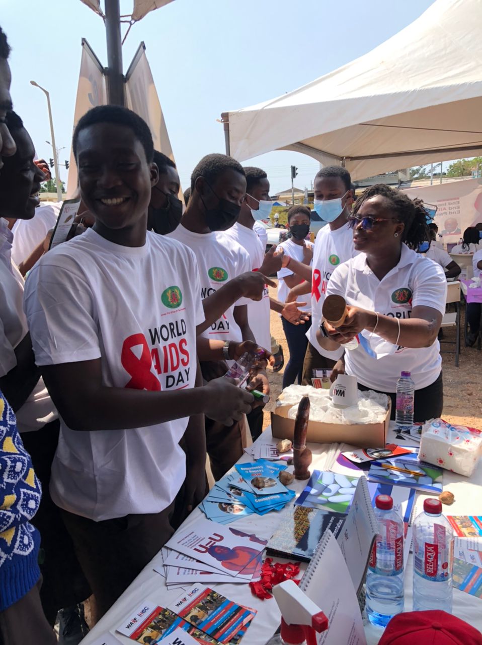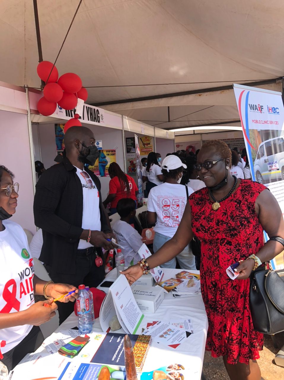 Starting off with a month-long activity centered around community level education, screening and referral of identified cases for further care, alongside radio and TV sessions, the World AIDS Day related activities were crowned with an exhibition and HIV testing & counseling durbar, organized by the Ghana AIDS Commission which took place at the forecourt of the Trade fair Centre LA in the Greater Accra Region where literally all HIV focused NGOs in Ghana, including WAAF took part.